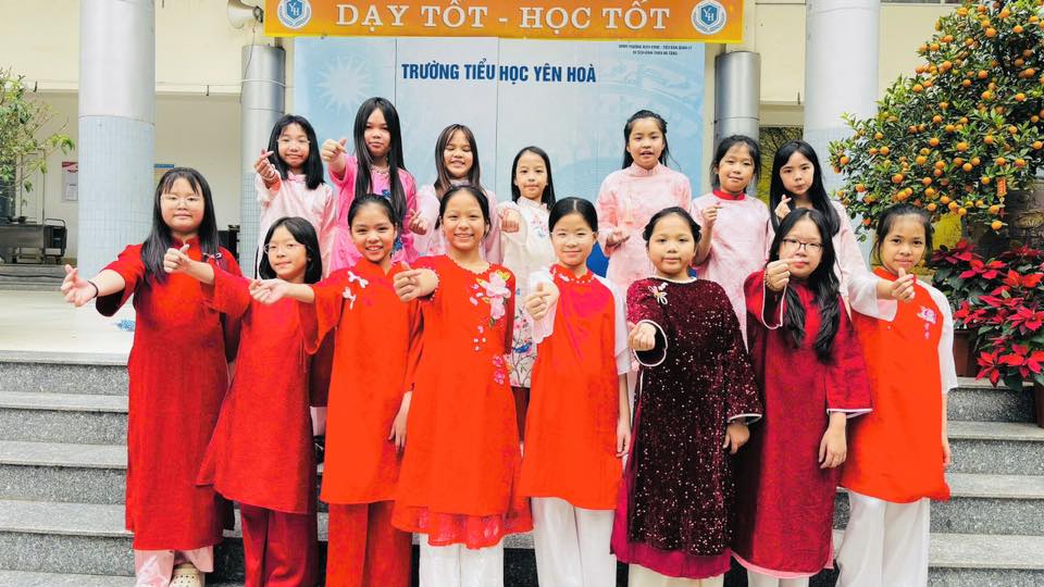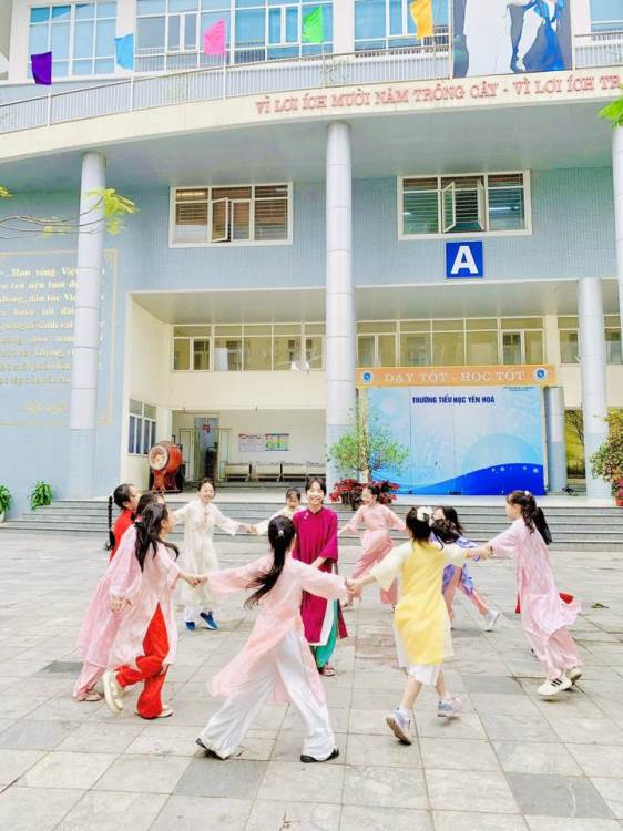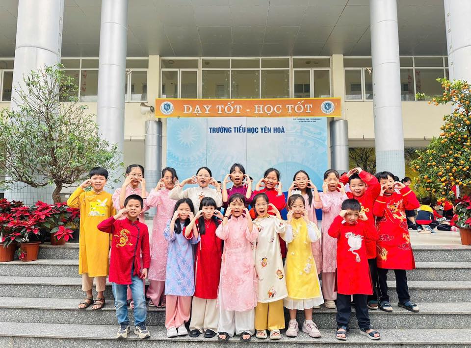Hưởng ứng Tuần lễ Áo dài Việt Nam, tập thể cán bộ, giáo viên và các em học sinh Trường Tiểu học Yên Hoà đã cùng nhau khoác lên mình những tà áo dài duyên dáng, tạo nên một không gian trường học rực rỡ sắc màu và đậm đà bản sắc dân tộc.