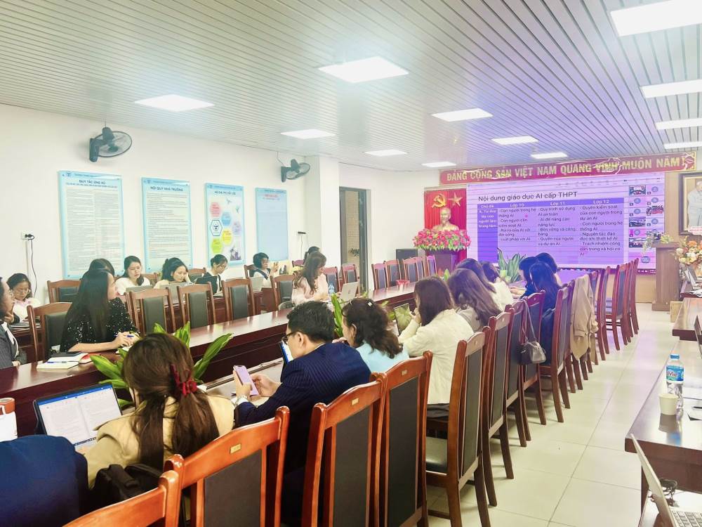 Buổi tập huấn nhằm trang bị những kiến thức nền tảng về giáo dục AI, giúp đội ngũ giáo viên nắm vững định hướng, nội dung và lộ trình triển khai trong nhà trường. Đây là bước chuẩn bị quan trọng để thực hiện hiệu quả kế hoạch thí điểm, đồng thời tăng cường năng lực chuyển đổi số trong giáo dục.