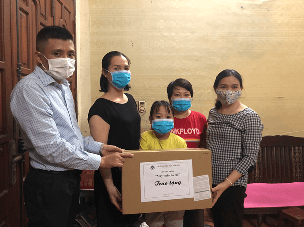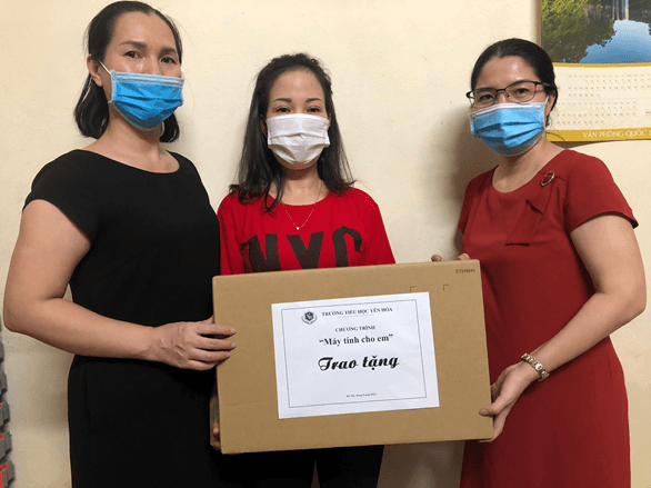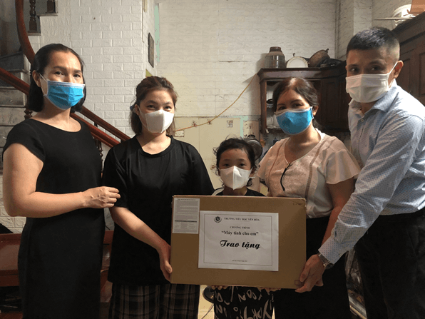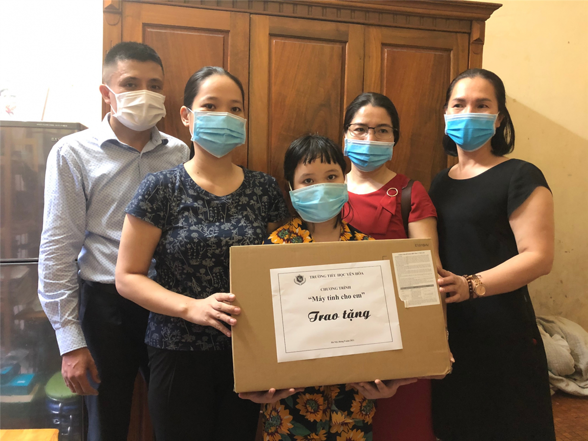 Thực hiện chương trình “Máy tính cho em” của Sở GD&ĐT, trường Tiểu học Yên Hòa đã nhanh chóng rà soát các con học sinh có hoàn cảnh khó khăn chưa có thiết bị đáp ứng việc học trực tuyến, đồng thời tích cực tuyên truyền, vận động cán bộ, giáo viên, nhân viên và phụ huynh, học sinh hưởng ứng, tham gia chương trình. Chỉ trong ít ngày, nhà trường đã nhận được sự quan tâm, ủng hộ và đóng góp nhiệt tình của tập thể cán bộ giáo viên nhà trường và các bậc phụ huynh. Toàn bộ số tiền ủng hộ được, nhà trường đã phối kết hợp với Ban đại diện hội CMHS tiến hành mua và trao tặng máy tính cho các con.
