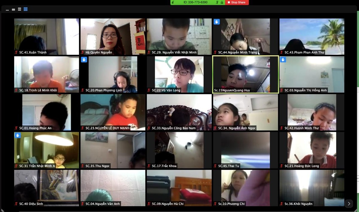 Cô giáo Hà Quyên – giáo viên chủ nhiệm lớp 5C đã kịp thời cập nhật thông tin và hướng dẫn cho các phụ huynh và học sinh của lớp mình chuẩn bị các công việc cần thiết để triển khai việc học tập theo hình thức này. Thời gian đầu triển khai việc học tập trực tuyến, có rất nhiều phản ứng khác nhau từ phía các bậc phụ huynh. Một số không giấu nổi những lo lắng của mình. Khó khăn mà các bậc phụ huynh đưa ra thì vô số, nào là nhà không có máy tính, học trên điện thoại thì dễ hỏng mắt, các con không chủ động được việc học, rồi đường truyền mạng kém, trình độ công nghệ thông tin còn hạn chế,… Cá nhân tôi cũng không khỏi băn khoăn mỗi khi nghĩ đến bản thân mình vì công việc bận rộn mà không thể sao sát với việc học của con, cũng sợ tuổi con còn ham chơi, làm sao đã đủ tự giác để học tập một cách nghiêm túc với điện thoại, máy tính khi không có người lớn ở bên cạnh kiểm soát,…