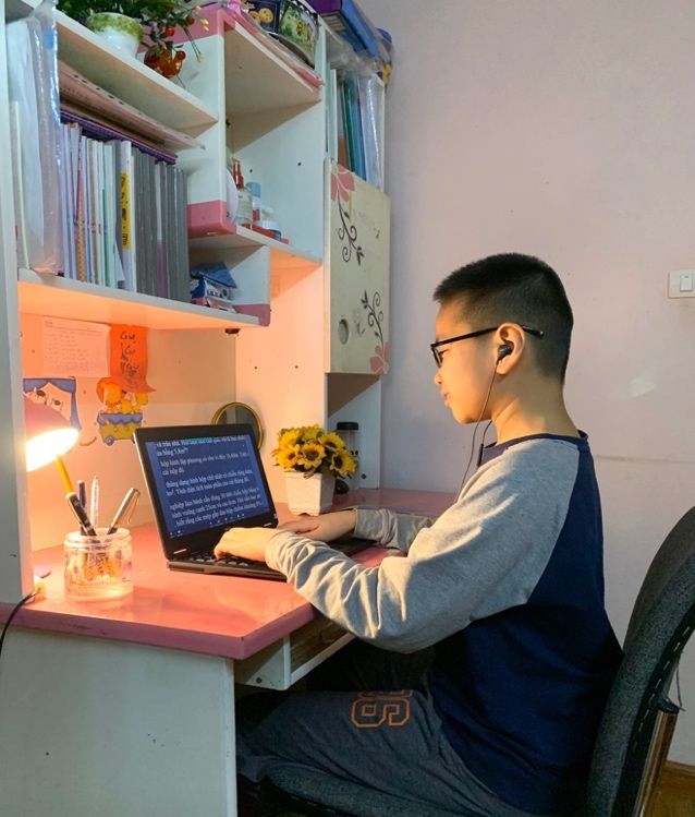 Với gia đình tôi, trong suốt hơn một tháng qua, có lẽ những câu chuyện “không hồi kết” về những tiết học online đã trở thành một phần trong bữa cơm tối của cả nhà. Con luôn không ngừng kể về những bài giảng của cô, về những đoạn phim hoặc hình ảnh thú vị được xem trong tiết học, về những trò chơi mà cô giáo tổ chức mà con phải cố gắng ra sao để đạt ngôi vị quán quân trong những cuộc đua,… Sau một thời gian học trực tuyến, điều làm tôi vui nhất là cảm nhận được con mình đã có những thay đổi rõ rệt về ý thức tự học và sự chủ động trong học tập. Tối nào, sau khi ăn cơm xong, con tự giác chuẩn bị sách vở và ngồi ngay ngắn trước ti vi để xem những bài giảng qua truyền hình. Học xong qua ti vi, con lại tiếp tục ngồi vào bàn đọc trước bài để hôm sau học với cô chủ nhiệm qua phần mềm Zoom. Con bây giờ biết chủ động hỏi mẹ xem cô đã gửi bài trên nhóm Zalo chưa, cô có dặn dò gì không, … Những ngày đầu, trước khi mẹ đi làm, con còn nhắc mẹ đừng quên in bài tập cô giao để con làm. Sau này, được sự cho phép của cô, con làm bài ngay trên máy và nộp lại, vừa để rèn kĩ năng máy tính, vừa không phải chờ mẹ đi làm về mới có phiếu bài tập để làm. Như vậy, nhờ có học trực tuyến, mẹ cũng yên tâm khi con không chỉ tự tin hơn trong việc giao tiếp và tương tác với cô giáo và các bạn, mà còn được trau dồi các kiến thức máy tính, tạo nền tảng cho tương lai sau này.