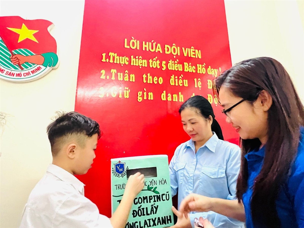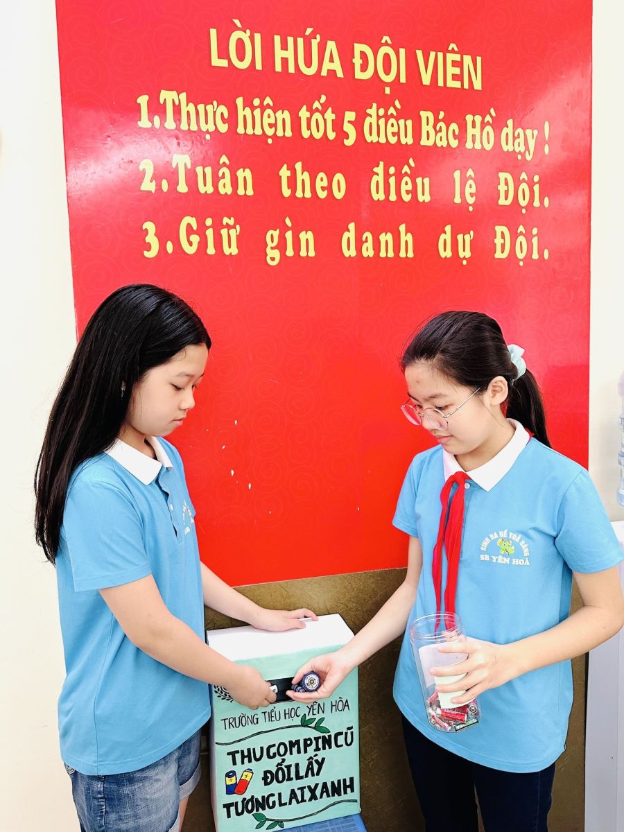 Dưới sự hướng dẫn của các thầy cô giáo trong Chi đoàn nhà trường về việc thu gom pin, hàng trăm viên pin cũ từ các vật dụng trong gia đình như điều khiển, đồ chơi, đèn pin, đồng hồ... đã và đang được các em học sinh trường tiểu học Yên Hòa thu gom đưa về tập kết tại thùng thu gom pin đặt tại sân trường.