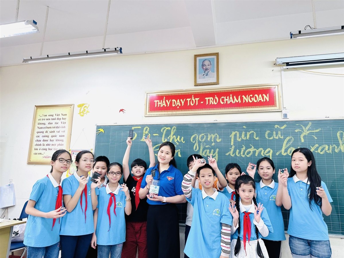 Hiểu được điều đó, trong giờ sinh hoạt dưới cờ đầu tuần, cô giáo Nguyễn Thị Hương – Giáo viên Tổng phụ trách Đội của trường đã khởi xướng và phát động trong học sinh toàn trường về việc thu gom pin đã qua sử dụng.