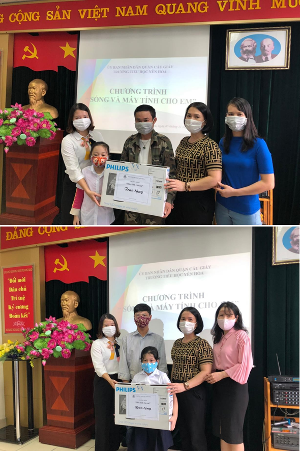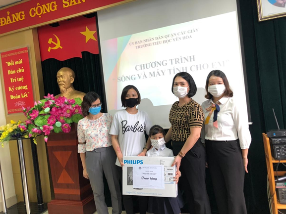 Trong niềm vui hân hoan, bạn Nguyễn Thị Thúy Nga lớp 5E chia sẻ: “Con cảm ơn các cô, các bác nhiều lắm. Từ giờ, con sẽ không phải dùng chung máy với em con nữa. Con có thể vào lớp đúng giờ và tham dự đầy đủ các buổi học. Con xin hứa sẽ học tập chăm chỉ và sử dụng máy tính đúng mục đích để đạt kết quả cao.”