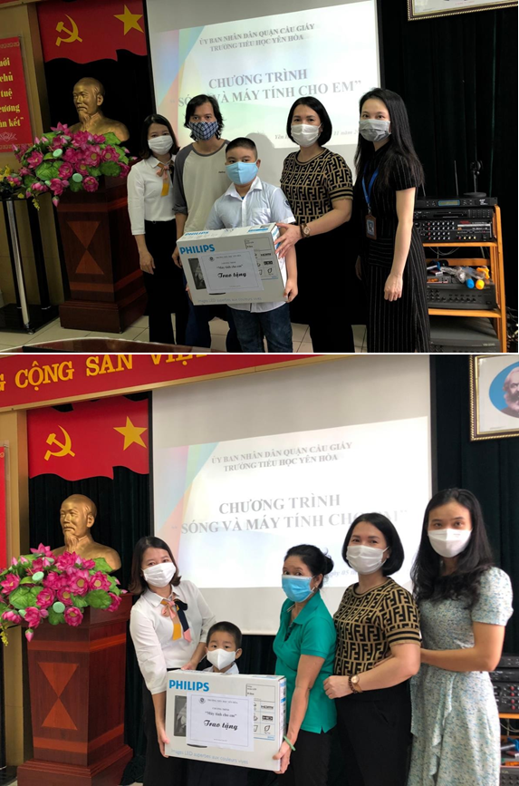 Tiếp nối thành công của chương trình “Sóng và Máy tính cho em” đợt 1, sáng ngày 5/11, trường Tiểu học Yên Hòa tiếp tục tổ chức trao tặng máy tính cho những học sinh có hoàn cảnh khó khăn. Toàn bộ số tiền ủng hộ từ cán bộ, giáo viên, nhân viên và phụ huynh học sinh nhà trường được dùng để mua những chiếc máy tính mới tinh dành tặng các con học sinh có hoàn cảnh khó khăn.