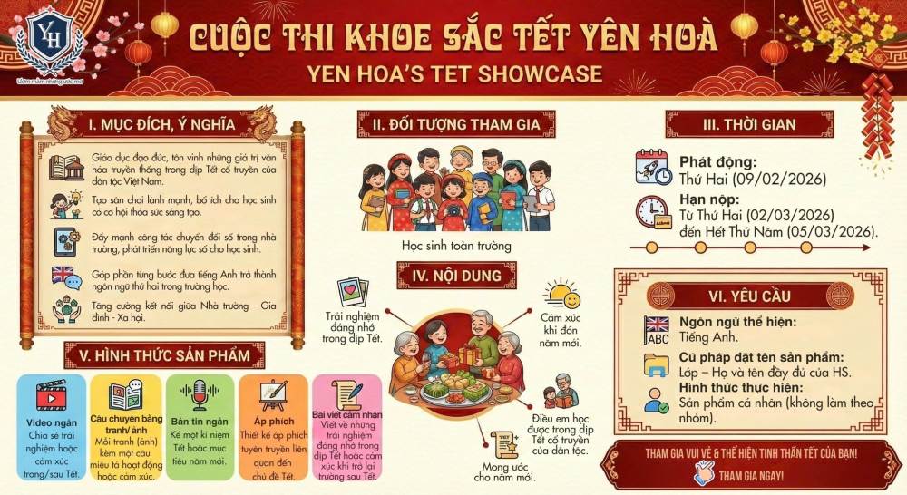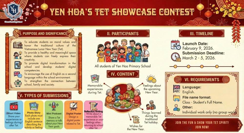 TRƯỜNG TIỂU HỌC YÊN HOÀ PHÁT ĐỘNG CUỘC THI “KHOE SẮC TẾT YÊN HOÀ” – YEN HOA’S TET SHOWCASE