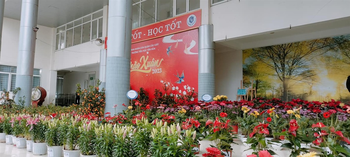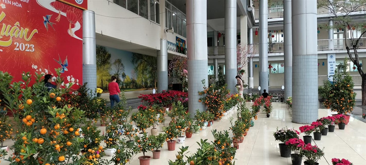 TRƯỜNG TIỂU HỌC YÊN HOÀ RỰC RỠ TRƯỚC GIỜ KHAI HỘI “CHỢ XUÂN YÊU THƯƠNG”