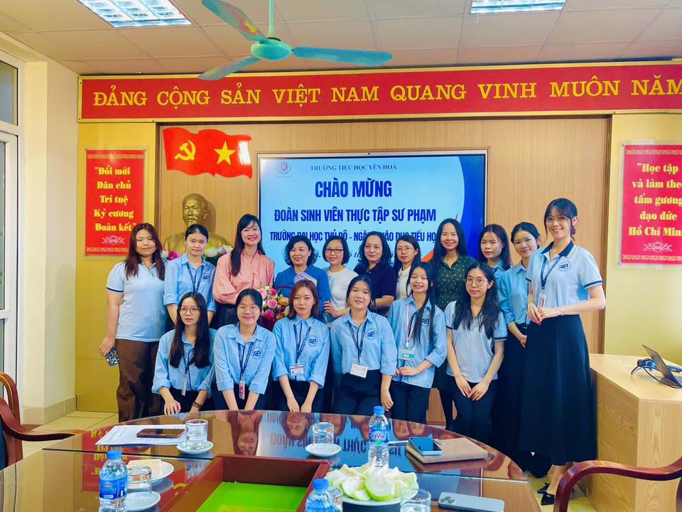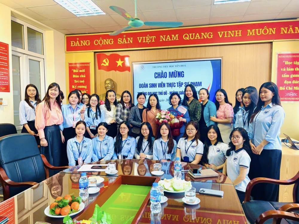 Tại buổi sinh hoạt dưới cờ, trường Tiểu học Yên Hoà đã đón chào đoàn sinh viên thực tập đến từ khoa Sư phạm, ngành Giáo dục Tiểu học, Trường Đại học Thủ đô Hà Nội. Đây là những cô giáo tương lai mang đầy nhiệt huyết, sẵn sàng học hỏi và chia sẻ niềm đam mê với nghề giáo. Các bạn sinh viên còn đem đến cho thầy cô và các bạn nhỏ một tiết mục mashup đặc sắc “Hành trình của lá – Nhớ mãi chuyến đi này”, góp phần tạo nên không khí đầy màu sắc và năng lượng tươi mới .