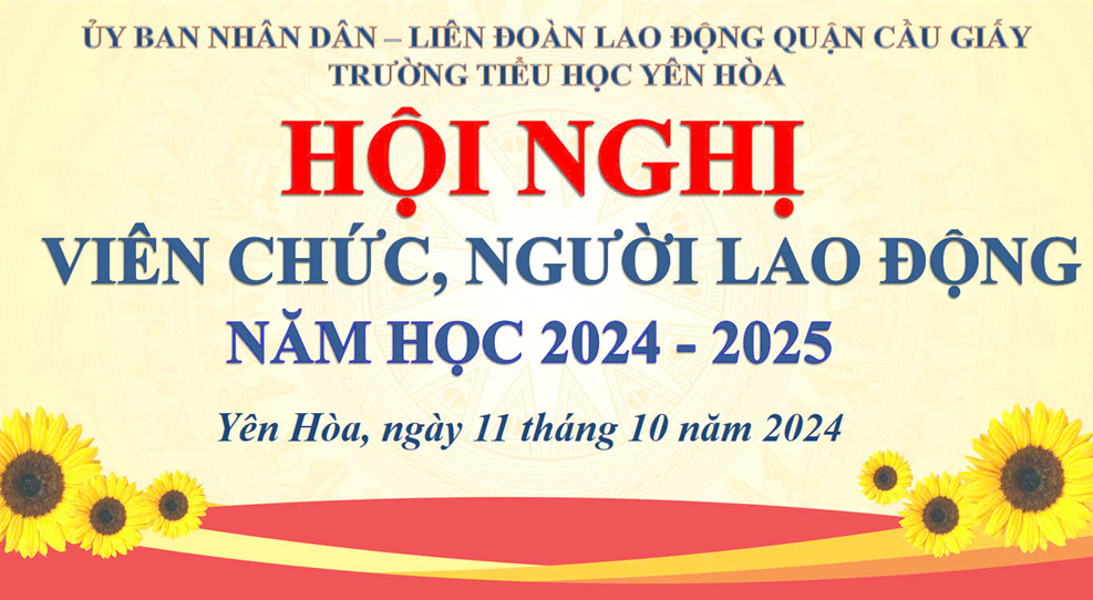 Trong không khí hào hùng kỉ niệm 70 năm Ngày Giải phóng Thủ đô (10/10/1954-10/10/2024), sáng Trong khoông khi ngày 11 tháng 10 năm 2024, trường Tiểu học Yên Hòa đã long trọng tổ chức Hội nghị viên chức, người lao động năm học 2024 – 2025. Hội nghị diễn ra thường lệ các năm với mục đích chính đánh giá toàn bộ quá trình hoạt động của nhà trường trong năm học vừa qua, đồng thời bàn về các giải pháp thực hiện các chỉ tiêu, kế hoạch cho năm học 2024-2025 sắp tới.