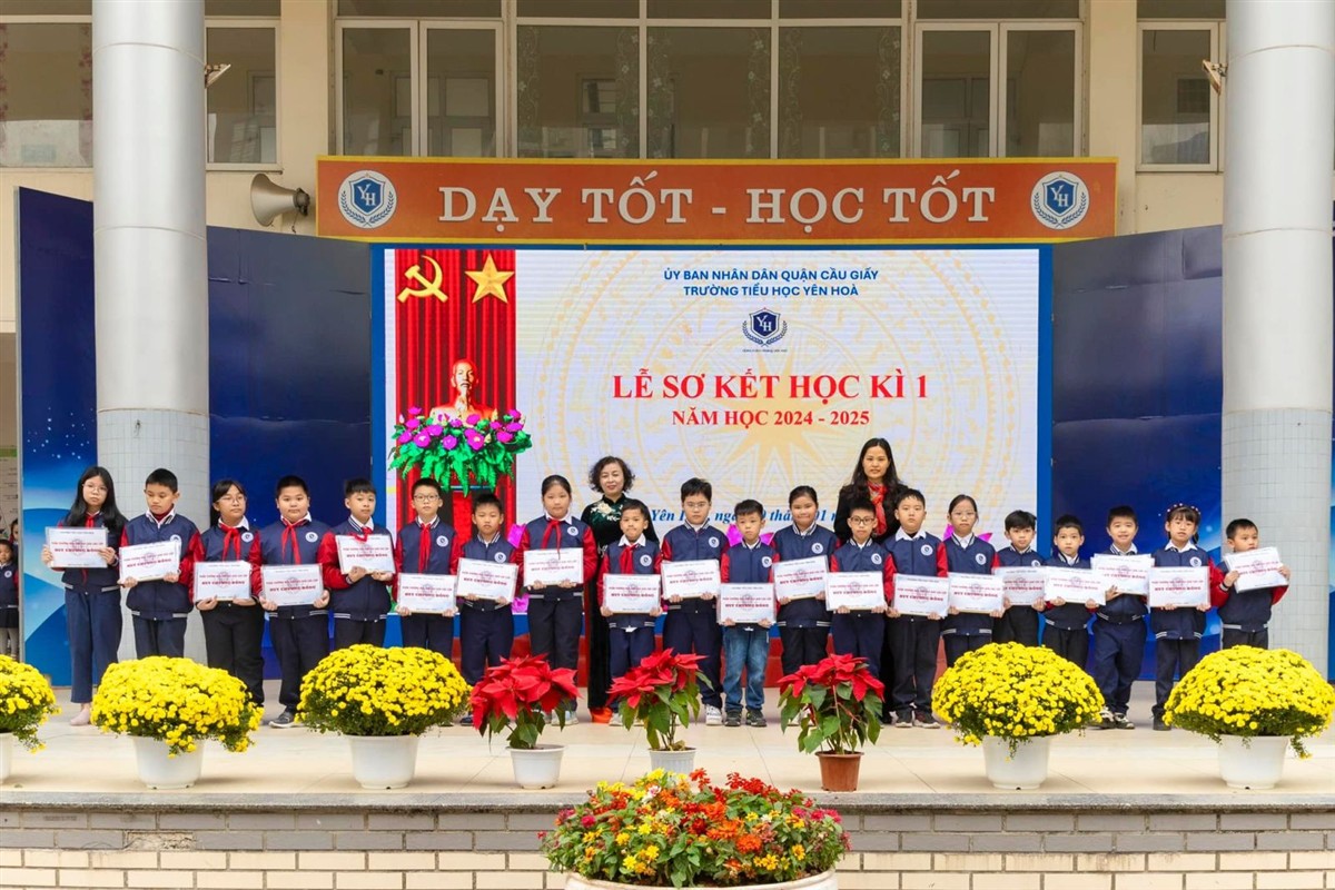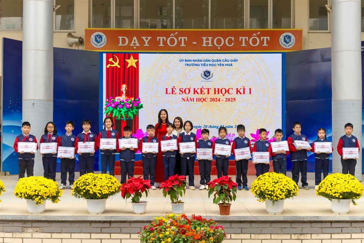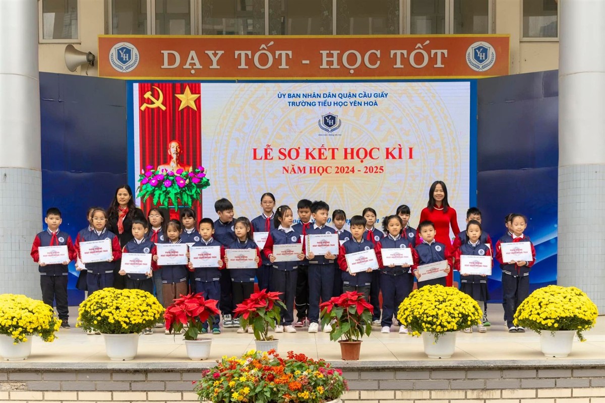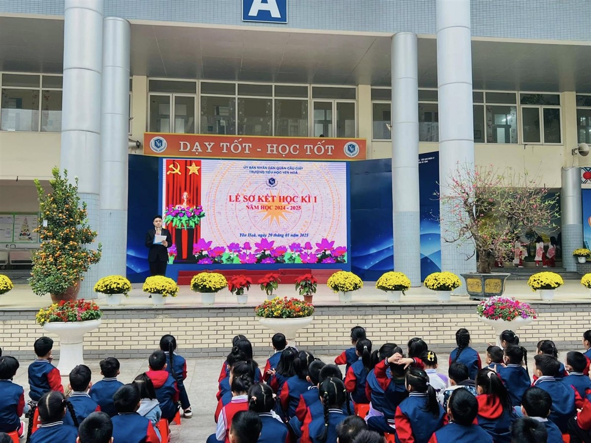 Hôm nay, ngày 20/01/2025, trường Tiểu học Yên Hòa tổ chức Lễ sơ kết học kì I năm học 2024 - 2025 trong không khí trang trọng, phấn khởi và đầy tự hào. Buổi lễ là dịp để nhìn lại những nỗ lực không ngừng nghỉ và những thành tích đáng tự hào của toàn thể thầy cô và học sinh nhà trường trong học kì I vừa qua.