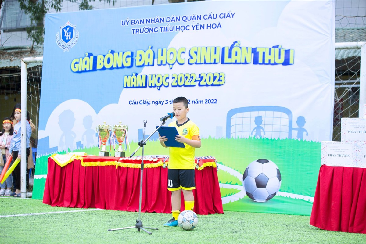 Nhằm khuyến khích các em học sinh hăng hái rèn luyện sức khỏe, phát triển thể chất, sáng ngày 3/12/2022, trường Tiểu học Yên Hòa đã vui mừng tổ chức Lễ khai mạc GIẢI BÓNG ĐÁ HỌC SINH LẦN THỨ I dành cho các lớp khối Bốn và khối Năm.