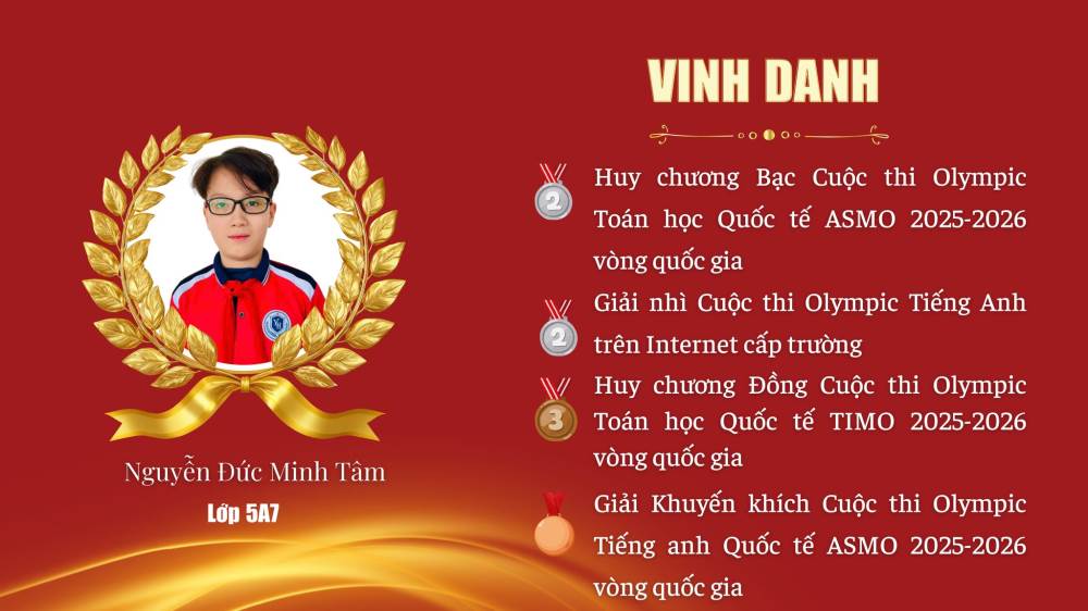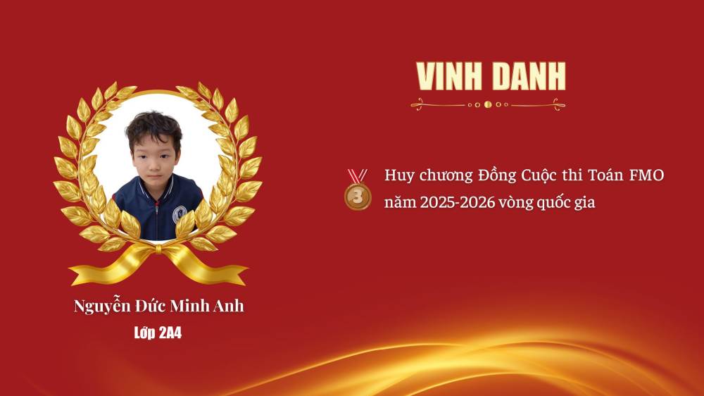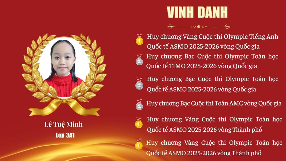 Lê Tuệ Minh – Lớp 3A1 – HCV Olympic Tiếng Anh Quốc tế ASMO 2025–2026 (Vòng Quốc gia)