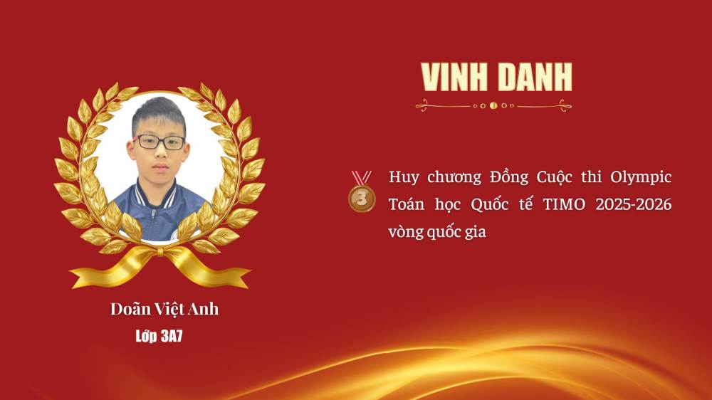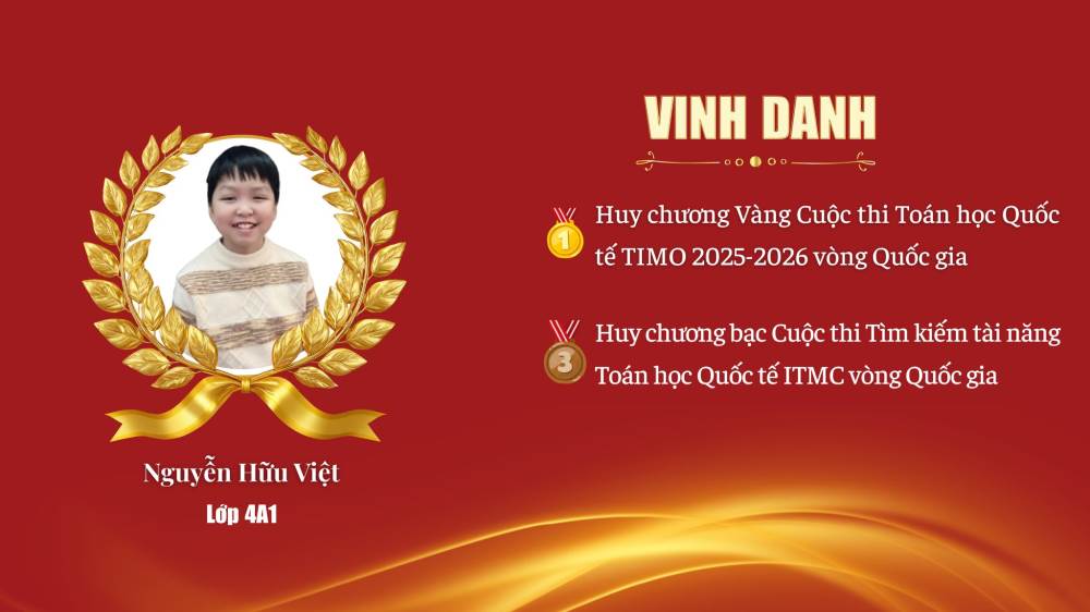 Nguyễn Hữu Việt – Lớp 4A1 – HCV Toán học Quốc tế TIMO 2025–2026 (Vòng Quốc gia)