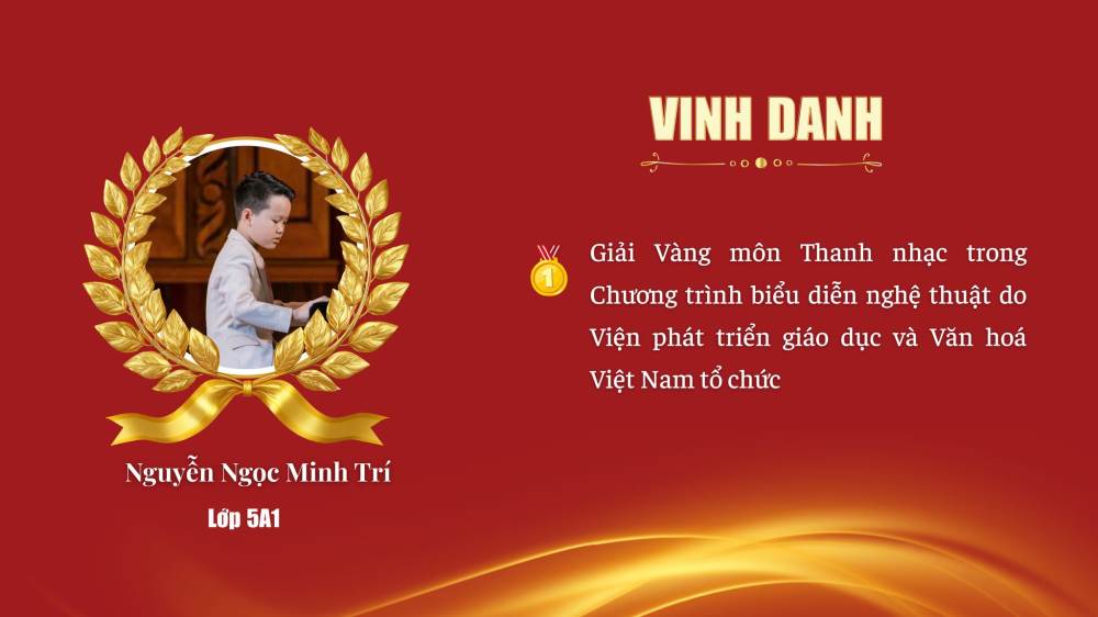 Nguyễn Ngọc Minh Trí – Lớp 5A1 – Giải Vàng môn Thanh nhạc (Chương trình biểu diễn nghệ thuật do Viện Phát triển GD&VH Việt Nam tổ chức)