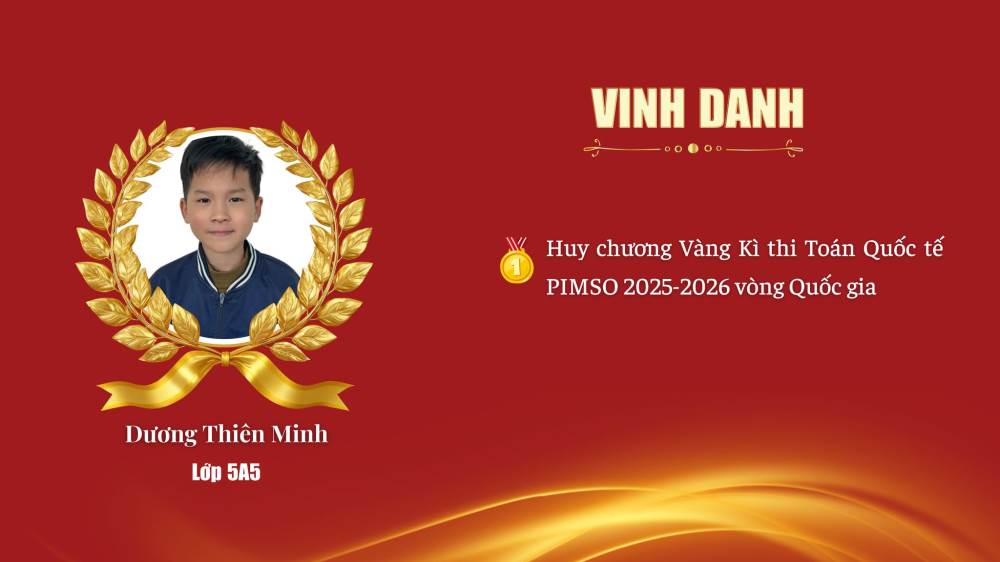 Dương Thiên Minh – Lớp 5A5 – HCV Kỳ thi Toán Quốc tế PIMSO 2025–2026 (Vòng Quốc gia)