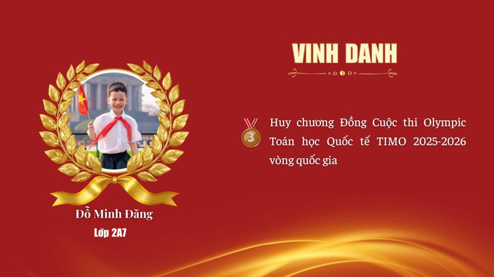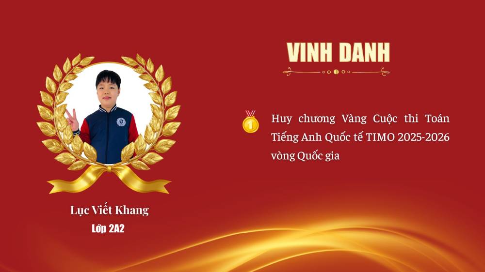 Lục Viết Khang – Lớp 2A2 – HCV Toán Tiếng Anh Quốc tế TIMO 2025–2026 (Vòng Quốc gia)