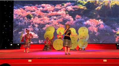 Màn song ca đầy ngọt ngào ca khúc “Nhớ mùa thu Hà Nội” do thầy giáo Nguyên An và cô giáo Thu Hà trình bày mở màn cho chương trình văn nghệ chào mừng.