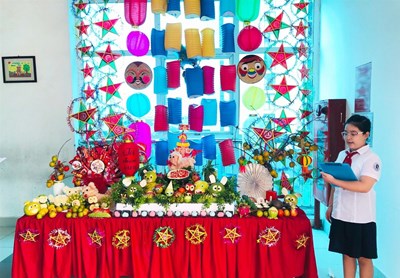 Mùa thu đến khơi gợi trong lòng người cũng như trong tâm hồn trẻ thơ một sự háo hức khôn nguôi về ngày Tết trung thu.. Là một ngày tết cổ truyền của dân tộc, tết trung thu không thể thiếu nào thiếu được mâm cỗ trông trăng. Các bạn lớp 5A, 5B, 5C VÀ 5D đã trình bày ý tưởng về mâm cỗ.Với chủ đề “Vui Tết đoàn viên”