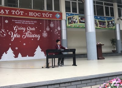 Sáng ngày 7/1/2019 trong tiết sinh hoạt dưới cờ, em Hoàng Anh Vũ học sinh lớp 4E, đã gửi đến thầy cô giáo và các bạn học sinh trong trường tiết mục đàn Piano bài Trống Cơm.