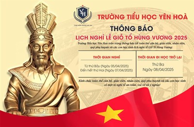 Trường Tiểu học Yên Hoà trân trọng thông báo Lịch nghỉ Lễ Giỗ Tổ Hùng Vương