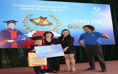 Nhằm tạo cho các em học sinh một sân chơi trí tuệ, bổ ích và lý thú trên tinh thần “Học mà chơi – Chơi mà học”, giúp các em học sinh yêu thích môn Tiếng Anh; đồng thời giúp các em học sinh có cơ hội thử sức và đánh giá năng lực để tiếp tục phấn đấu rèn luyện về kiến thức và kỹ năng của bản thân, ngày 02/03/2023 vừa qua, trường Tiểu học Yên Hòa phối hợp với trung tâm APOLLO ENGLISH tổ chức cho các em học sinh tham gia cuộc thi “Rung chuông vàng” phiên bản Tiếng Anh - RING THE GOLDEN BELL.