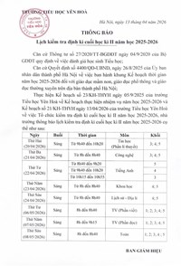 LỊCH KIỂM TRA ĐỊNH KỲ CUỐI HỌC KỲ II NĂM HỌC 2025-2026